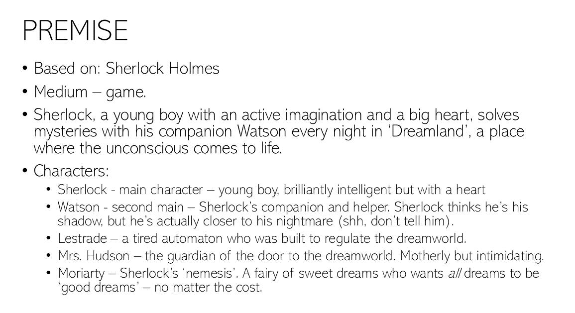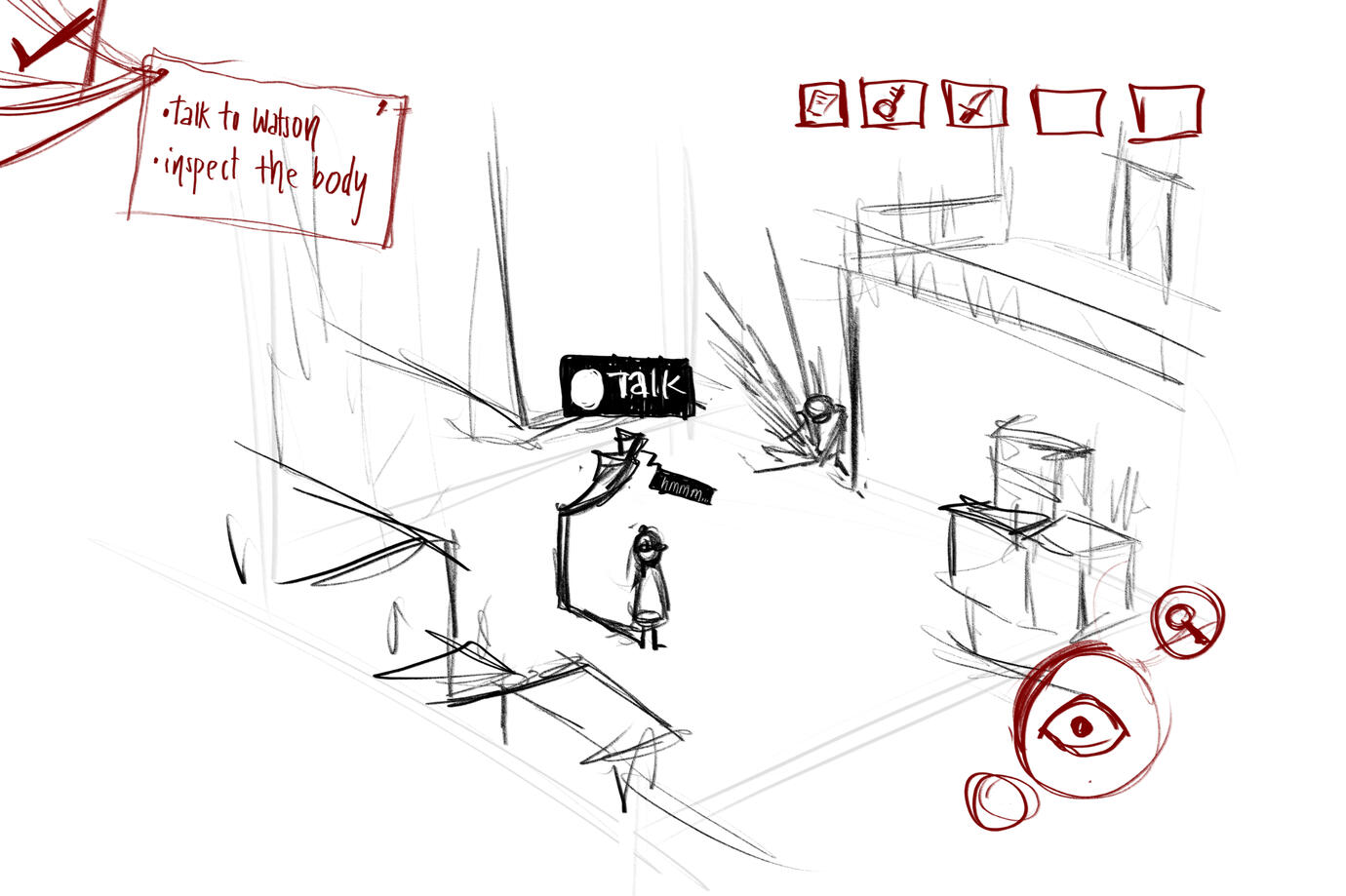 This project was concept development for a game based on the character of Sherlock Holmes.