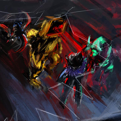 As part of the ideation process, I painted a few style frames, using colour scripts we had decided on.