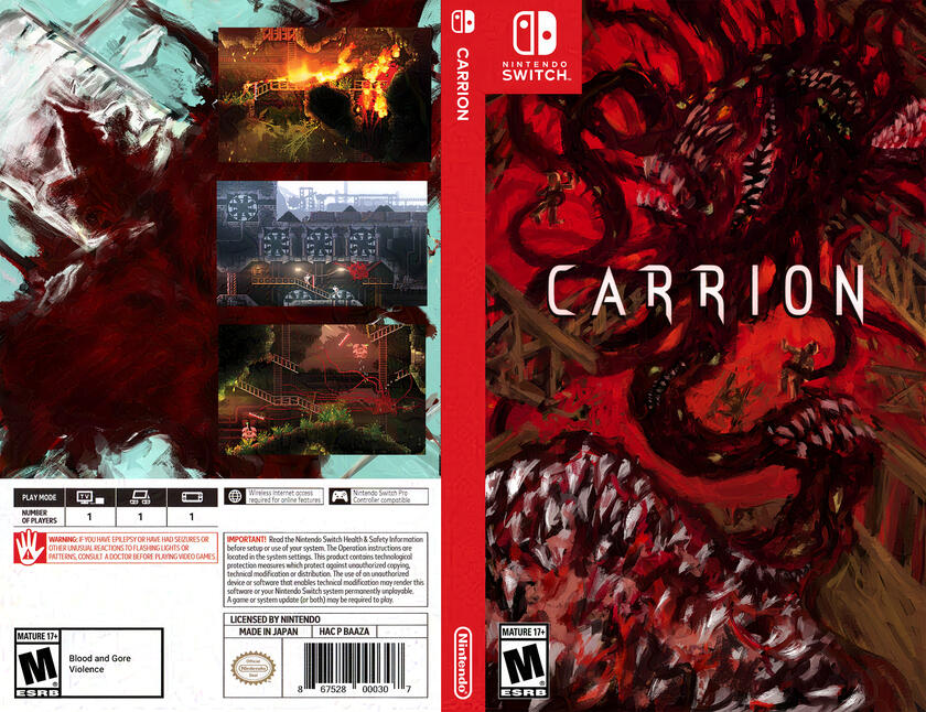 For this project, I created box cover art for Carrion, a reverse-horror game about a monstrous experiment escaping containment.