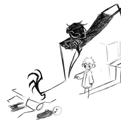 I also wanted my other animated style frame to be of Nicht's corrupted form - I wanted to emphasise the change Nicht goes through, and the fact that Nicht ultimately turns into what it tried to stop.